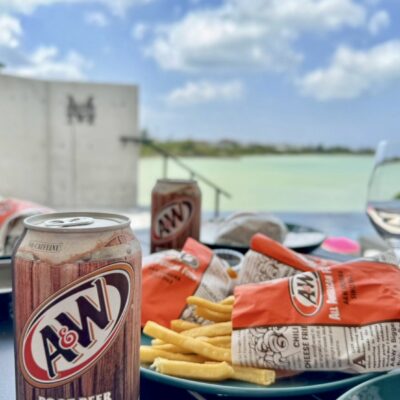 空港の「A&W」でハンバーガーを調達、プールサイドで!